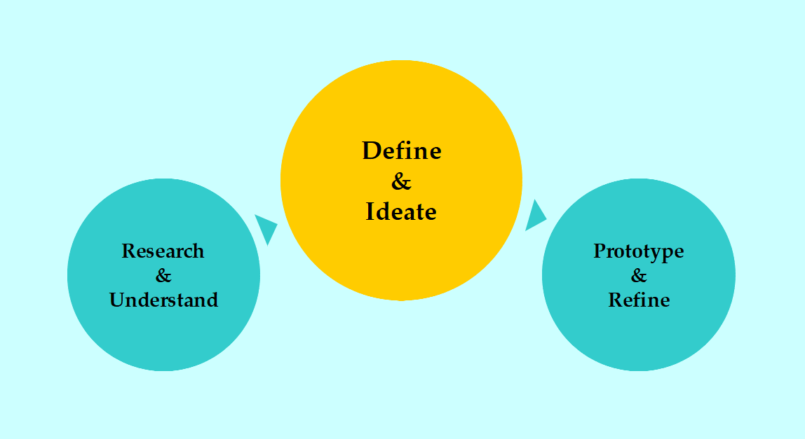 The creative parts of the design process, definition and ideation, is attributed to abductive cognition and, together with the various methods in the other phases, broadly defines the term Design Thinking.